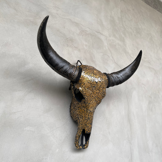 Amber Tide Mosaic | Glass Buffalo Skull